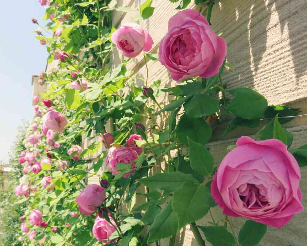 レーヌビクトリアはガーデン内で一番はじめに開花するツルバラですね♪