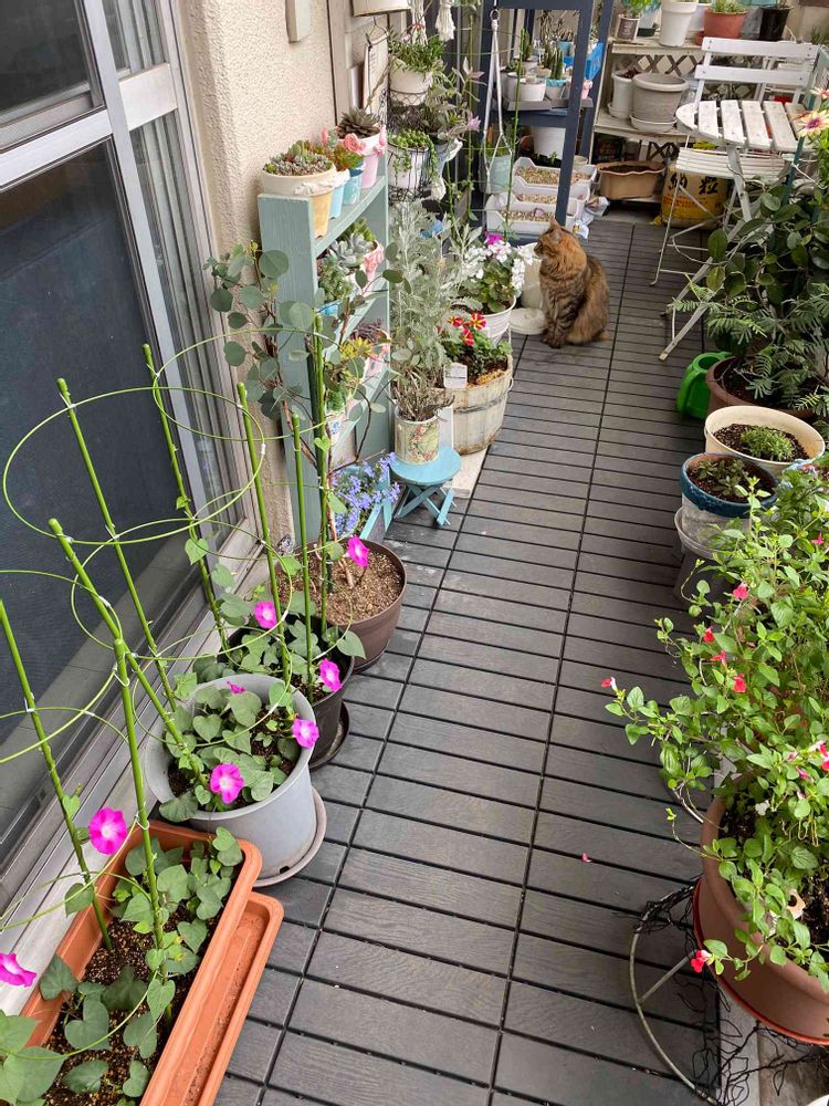 毎朝、ベランダの窓を開けると、真っ先に外に出ます。しばらくは部屋に戻りたがらないくらい