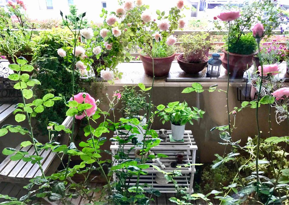 ベランダガーデン、狭いし蒸れるしいろいろ苦労はありますが、それでもやっぱりリビングから見える花と緑は癒されますよね〜☺️