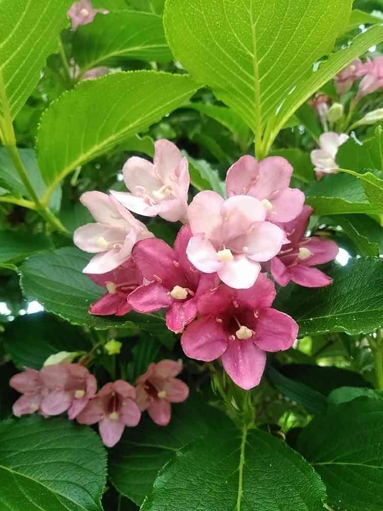 ニシキウツギのお花、咲き始めは白で段々とエンジ色に変化しているのかな……遠目で見ても綺麗でした