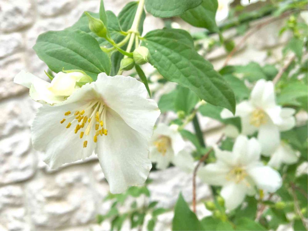 バイカウツギ ベルエトワールが咲き始め、幸せな甘い香りが漂っています