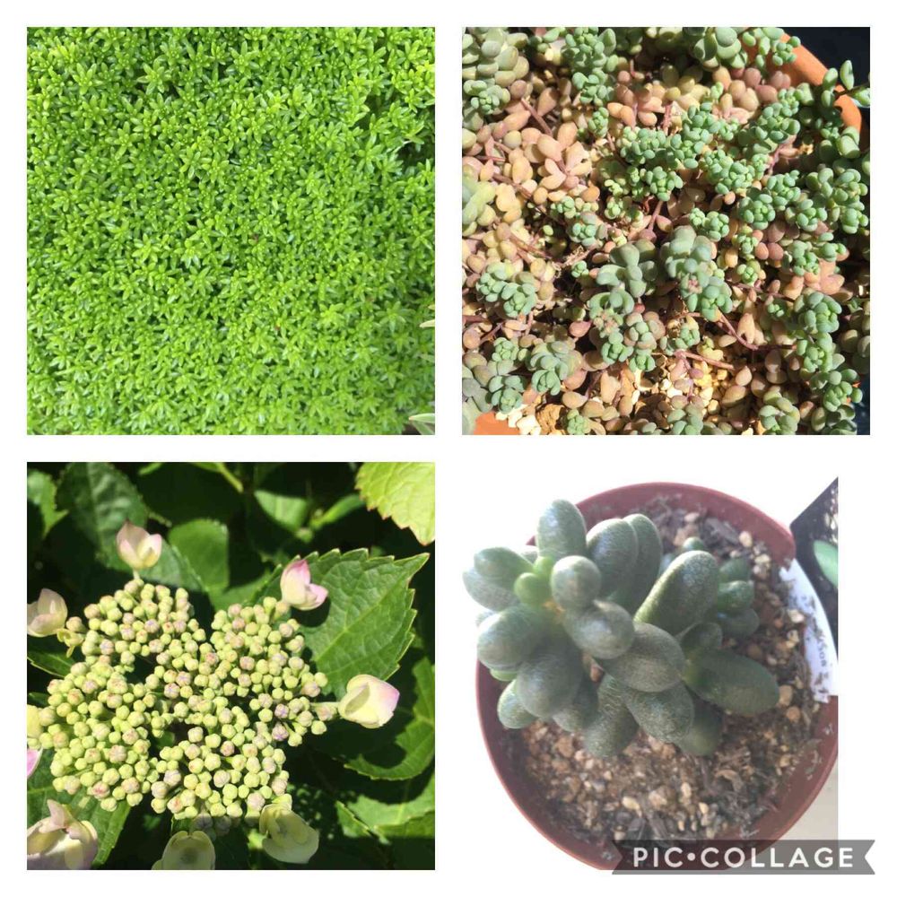 パープルヘイズもしや花が咲く?ガクアジサイ、セダム、緑亀の卵🐢集めてみました😆
