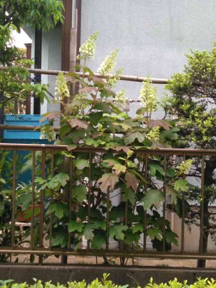 バルコニー/ベランダ,我が家のベランダから,柏葉紫陽花の花の投稿画像
