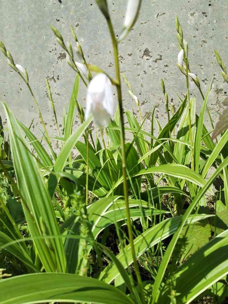 白のシラン斑入り❗️近くの👩(昔の大学生)👴(歳の差を比較中学生)から、五年前頂きましたのが、少しずつ増えてきました、