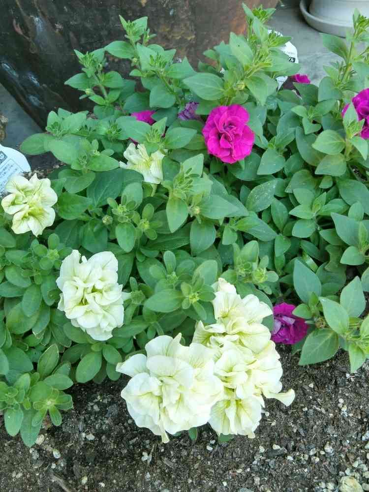 にこみさんの玄関,ペチュニアギュギュ ダブルイエロー,ペチュニアギュギュ ダブルパープルの投稿画像