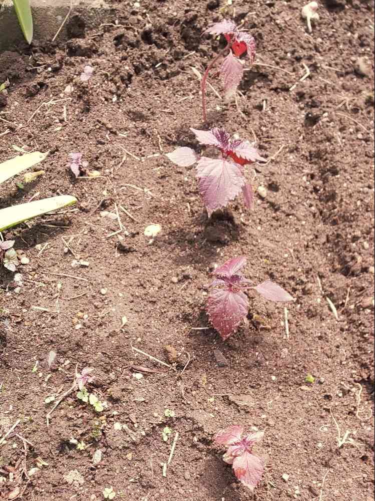 見つけたこぼれ種を寄せ集めて赤しそコーナー!😊✨