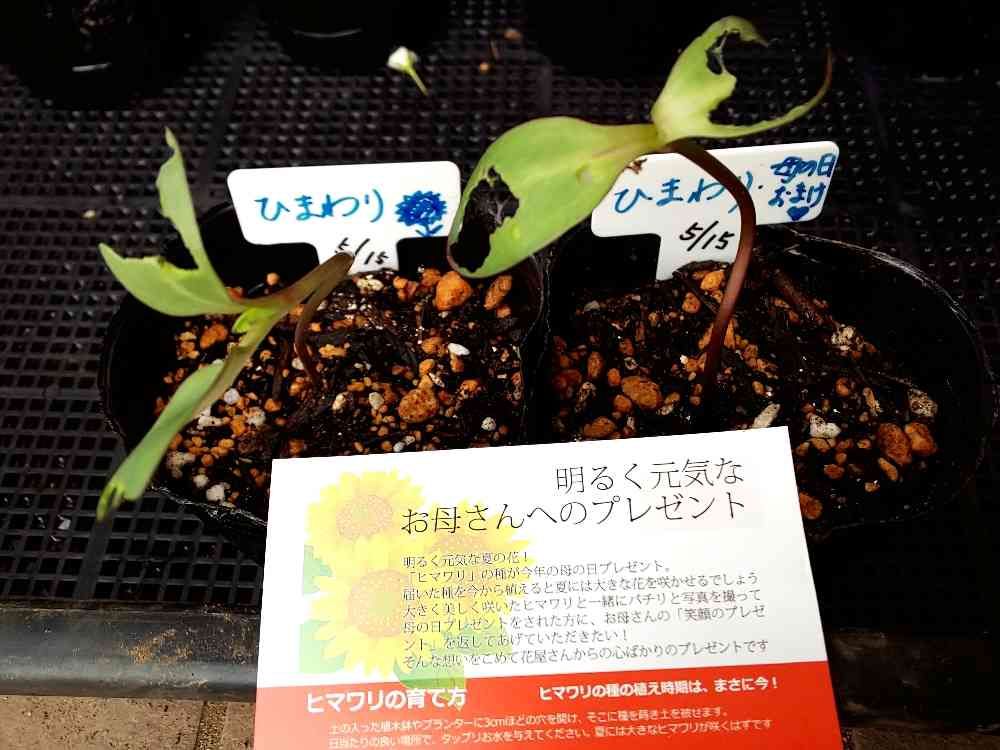 母の日プレゼントのカーネーションに付いていた🌻の種が発芽してたのに🌱誰かに食べられちゃって💦ちゃんと育つかな⁉️😂