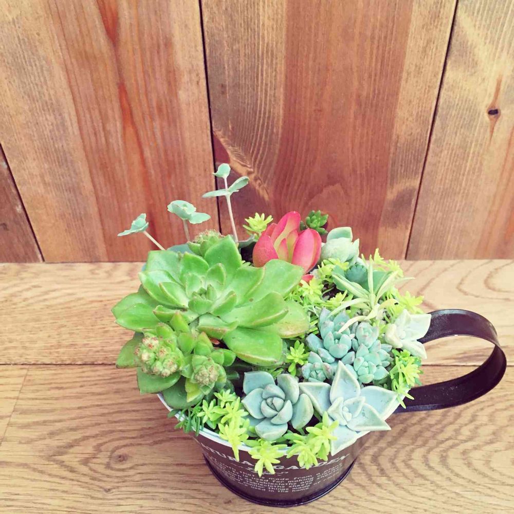 母の日に贈ったお菓子セットについていたカップが寄せ植えに丁度良いのでは?と母から返却…。そのカップに寄せ植えしました☆
