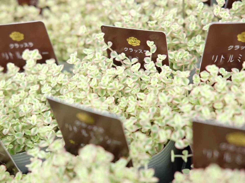 セダム「リトルミッシー」が入荷しました✨斑入り葉が可愛い人気のセダムです☺️寄せ植えの手前に植えたり、グランドカバーにもオススメです。