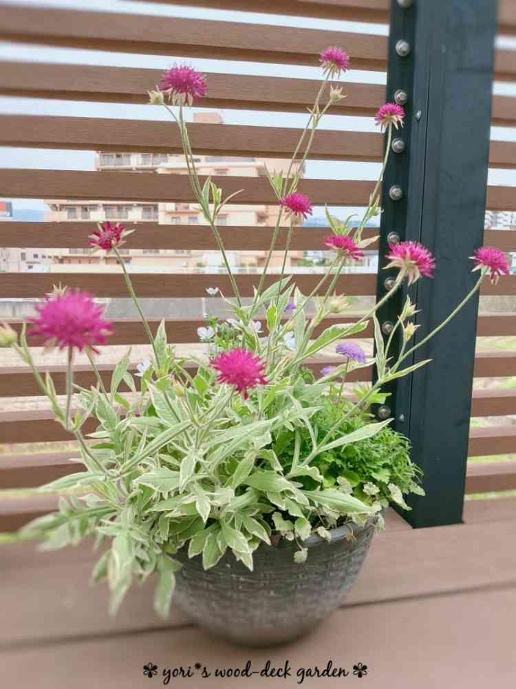 以前、ウッドデッキで寄せ植えでクナウティアちゃんを育てたけど、その時は良く咲いたよ😆