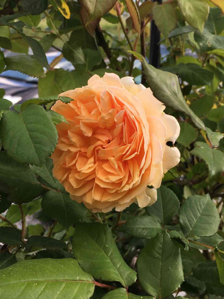 ちょっと虫に喰われてるけれど咲き始めました咲きはじめは色が濃くてフワフワ感は少ないかなぁでもキレイな色で綺麗なロゼット咲きです😍