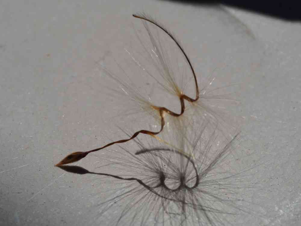 綿毛をつかって遠くに飛んで、水を含むと螺旋部分が直線に変形し、その過程で種が地面に潜り込むようです。