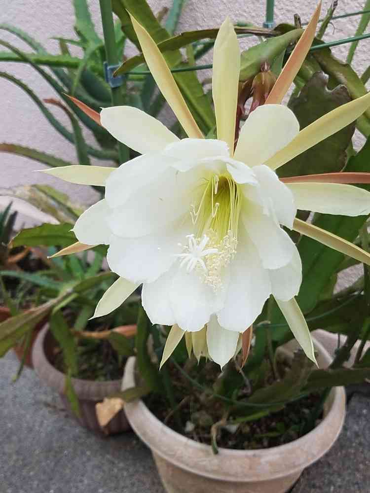 うちの玄関で咲いたイエロードラゴンフルーツ?クジャクサボテン?