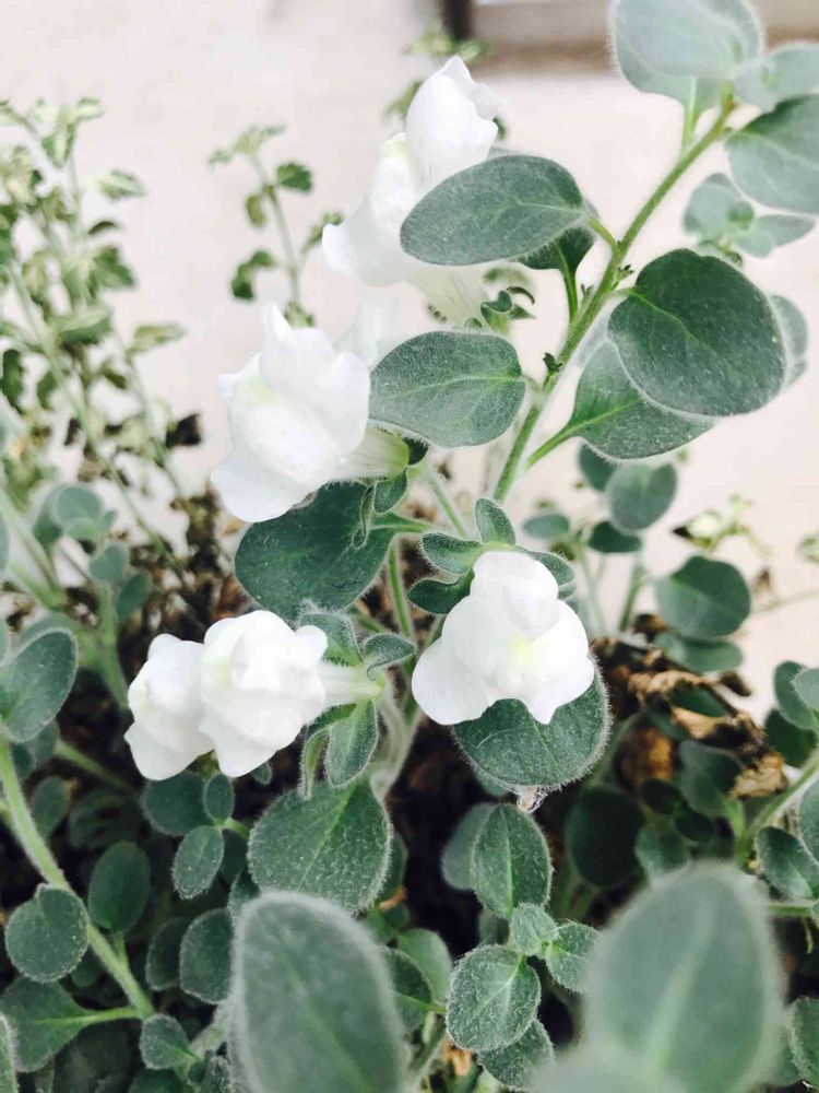 葉っぱがぐんぐん育つ中、やっと花咲いたキンギョソウ(๑•̀ㅂ•́)و✧ちょっと、真ん中が、黄色いのが可愛いです!