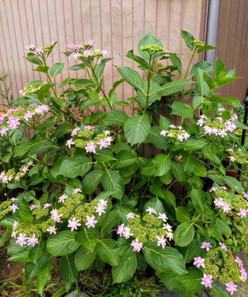 ご近所の花友さん宅の、花壇の紫陽花、ピンクの紫陽花キレイでした。