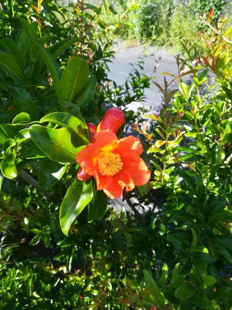 ザクロの雌花が咲いています。雄花が遅れていて、受粉できません。
