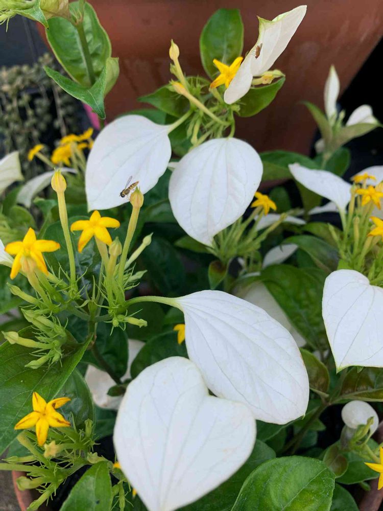 小さな蜂は、ホワイトコンロンカがお気に入りのようです。