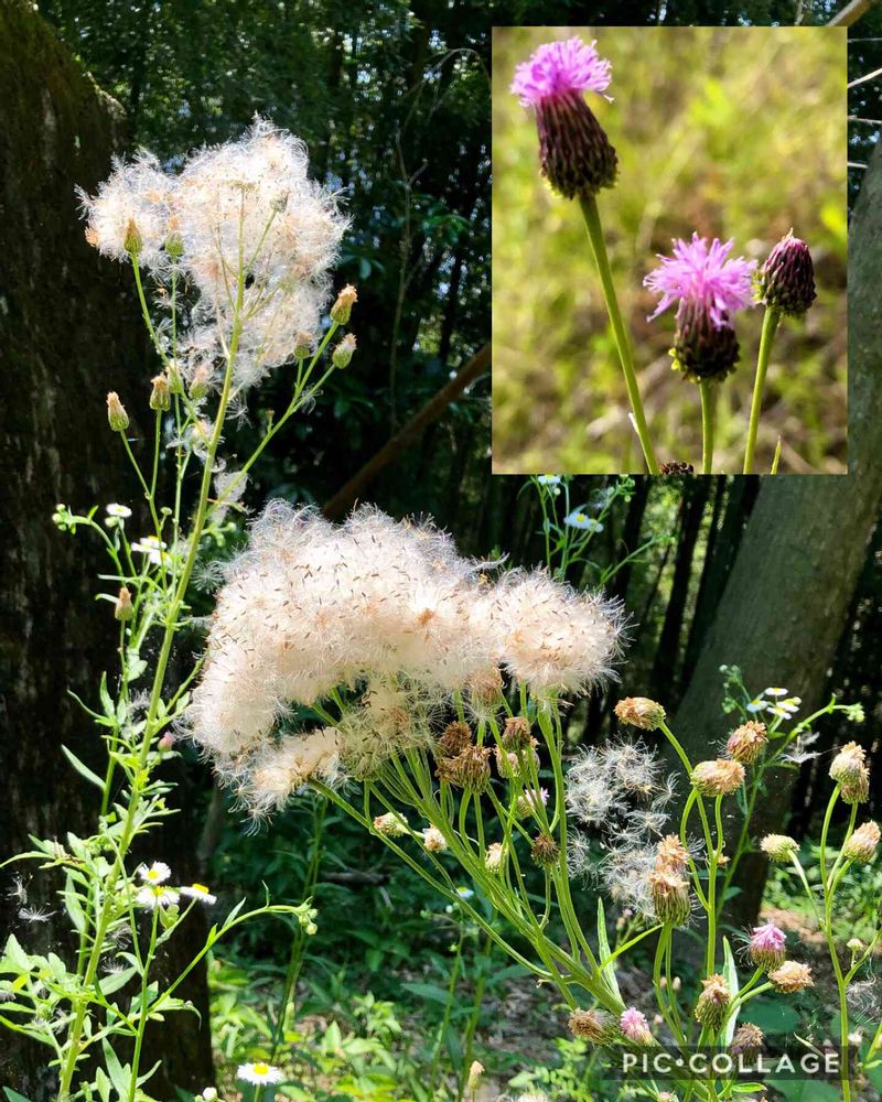 キツネアザミの花と花後の綿毛。