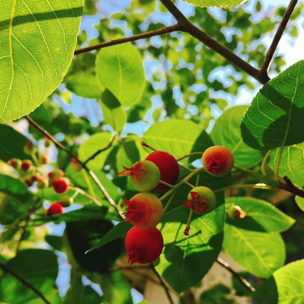 ジューンベリー小さな苗を植えてもう15年くらいになるのですが、やっと2階の窓に届く大きさになりました😃