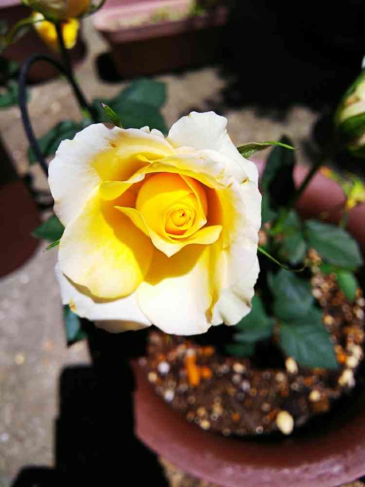こちらもミニバラ、薄いピンクかとおもいきやこちらもイエローでした。でも咲いてくれて嬉しい🍀