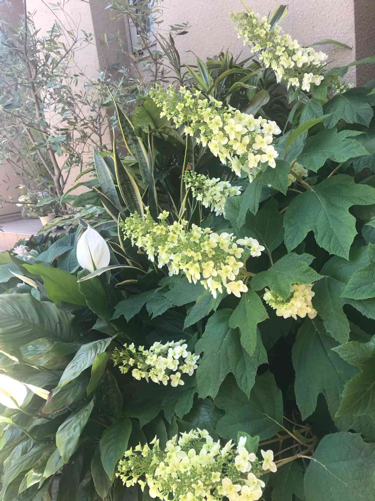 春からお外管理のスパティフィラムも花芽が上がってます💕