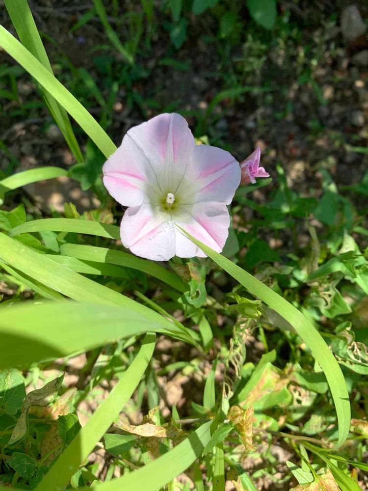広場の駐車場の植え込みに紛れて咲いていたコヒルガオ💕