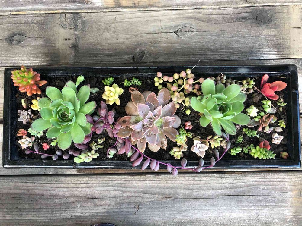 種類は少ないですが、一つ一つが増えてきたので 昔の花器に植え込みました。