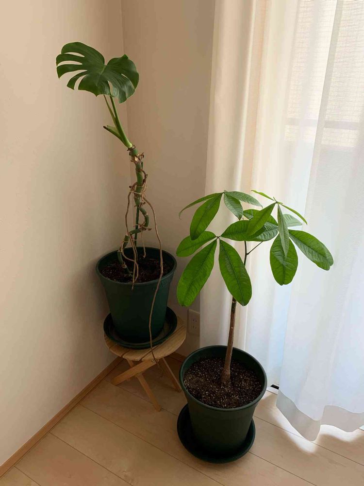 半年前、引越し前に悩んで切ったパキラもモンさんも伸びてきた!