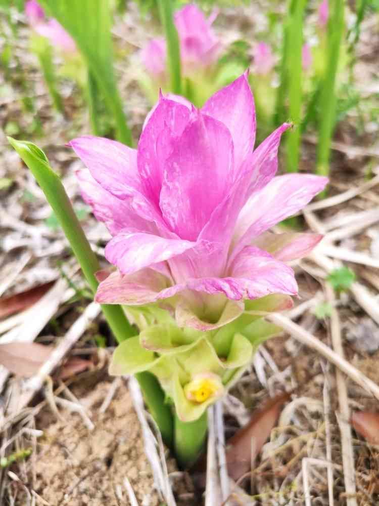 ピンクに見えるところは苞(ほう)で下の小さな黄色が花です。