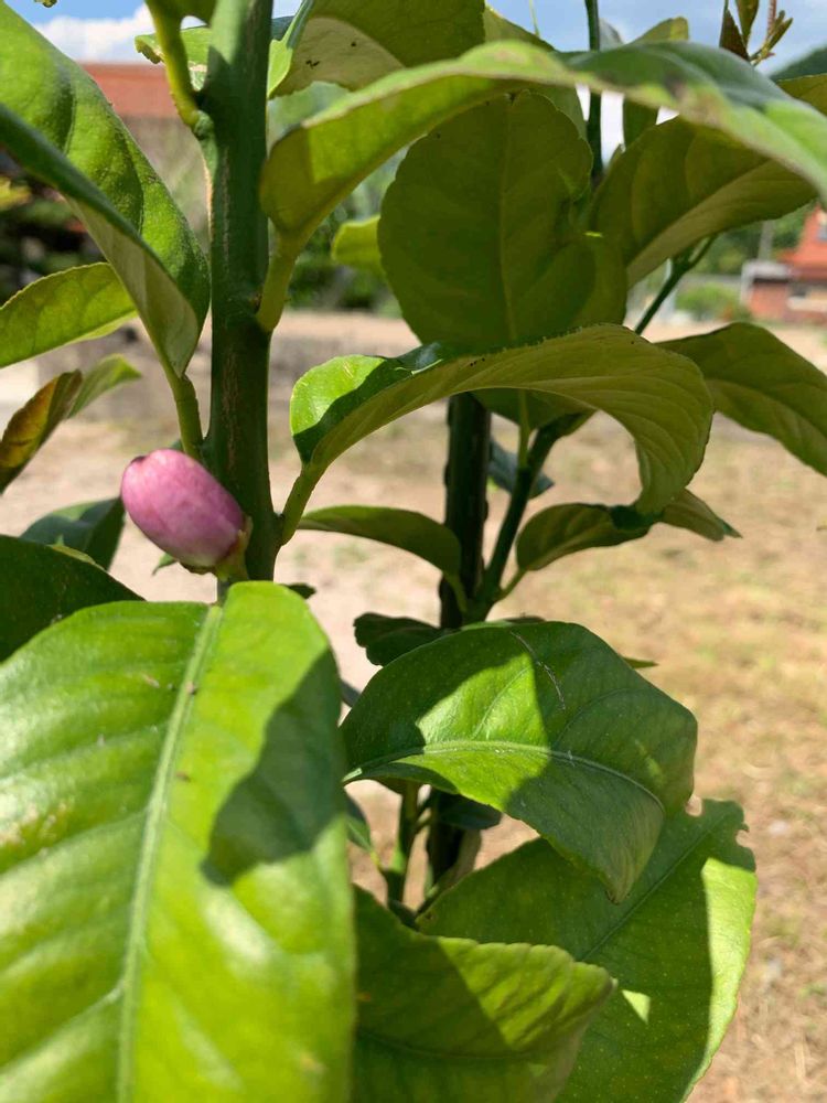 実家のレモンの木、鉢植えから地植えにしてつぼみをつけました。