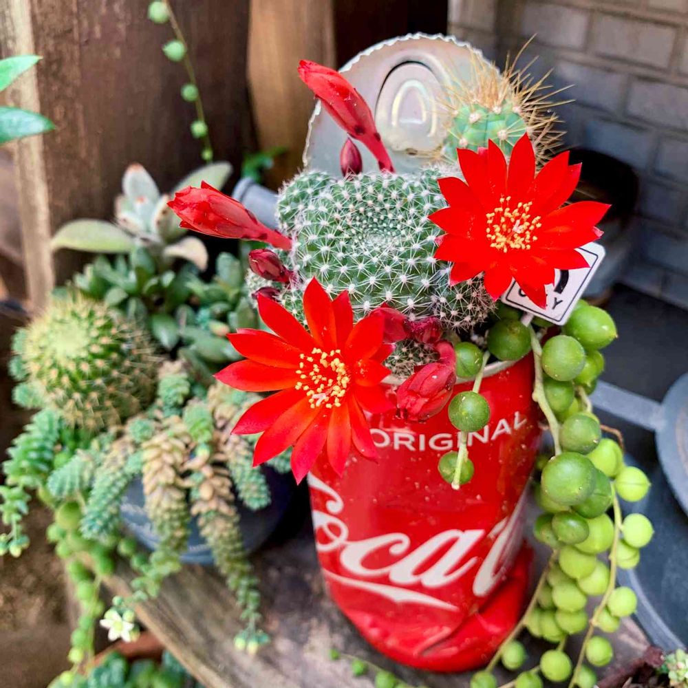 真っ赤なお花可愛いですね❤コーラ缶の色とお揃い♥(ˆ⌣ˆԅ)可愛い