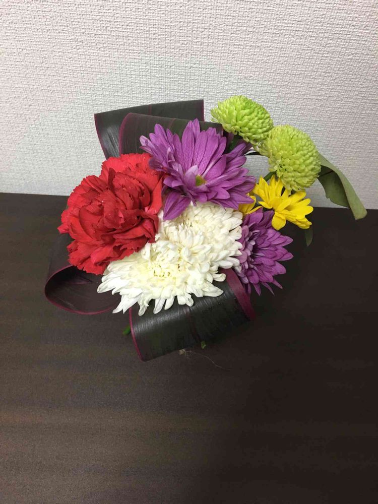 学校で作った仏花を解体して、スパイラルの練習も含めミニブーケ作りました。やっぱり何をしても形になるお花の美しさは素晴らしい!(ドラセナ&ユーカリは仏花じゃないですw)