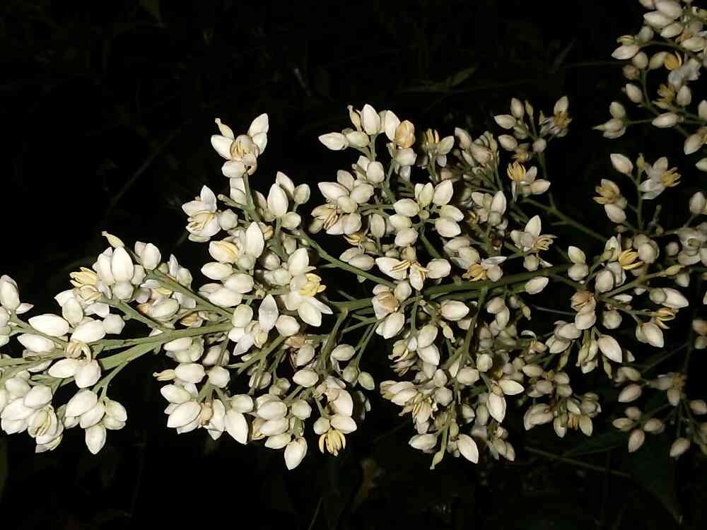 5月末、南天の花、開きだしました、この分だと今年の冬は赤い実は豊作か