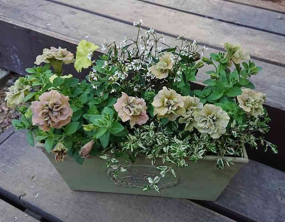 #夢と緑を運ぶ店ホピー#有限会社鈴蘭園#神戸市北区#園芸店#花屋#ガーデニング#花のある暮らし#植物のある暮らし#花好きと繋がりたい#神戸から発信#当店お勧め#寄せ植え#八重咲きペチュニア#ジュリエット・イエローベージュ#ユーフォルビア#スターブラスト・ソフトピンク#ヒューケラ#ドルチェ・ライムソルベ#ベロニカ#ミフィーブルート#シックな寄せ植えが好きです#ホピーのブログ