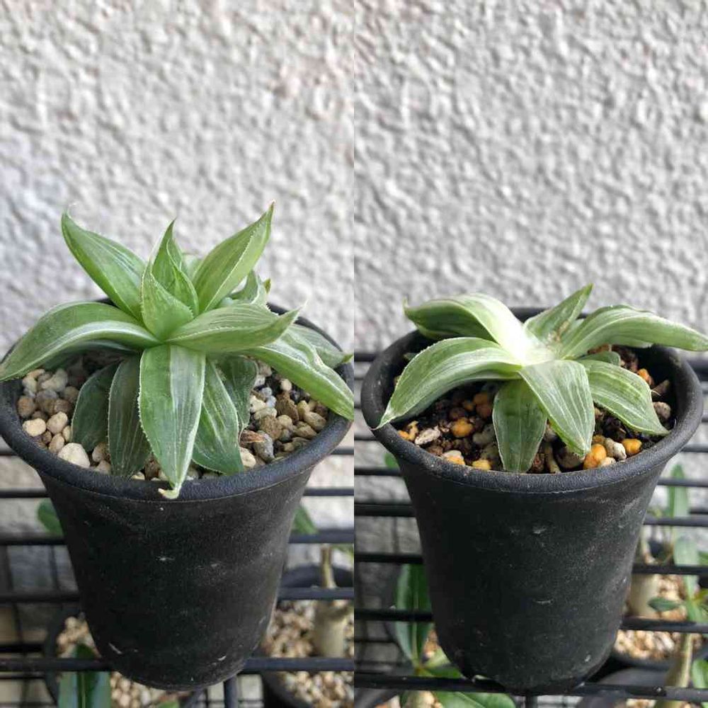 成長点がなくなって、子吹きもせず、動きが止まっていた祝宴錦。胴切りして、植え替えた。上半分はバラバラになった。