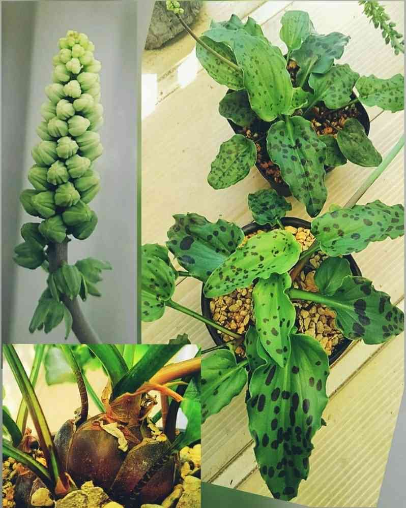 球根タイプの多肉植物で水玉模様の葉っぱ