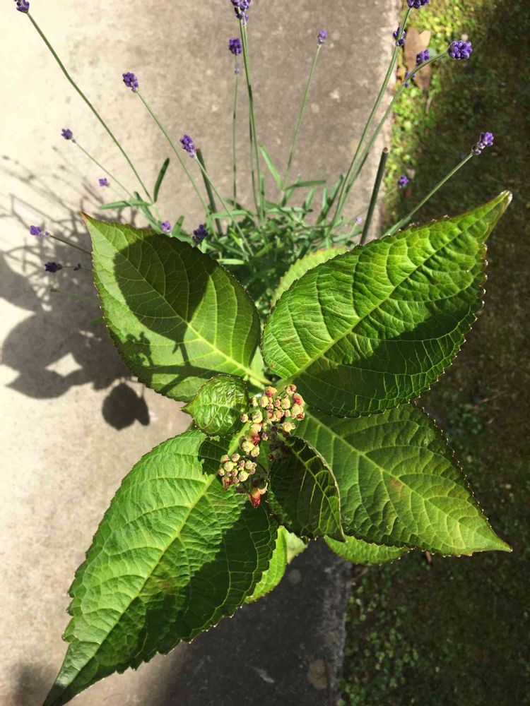 昨年選定した紫陽花の枝、あまりに元気が良かったのでラベンダーの鉢の中へ挿しておいたら・・