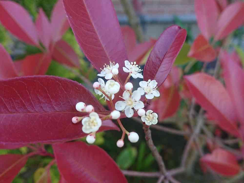 生垣のベニカナメモチの花が、とてもかわいい💕