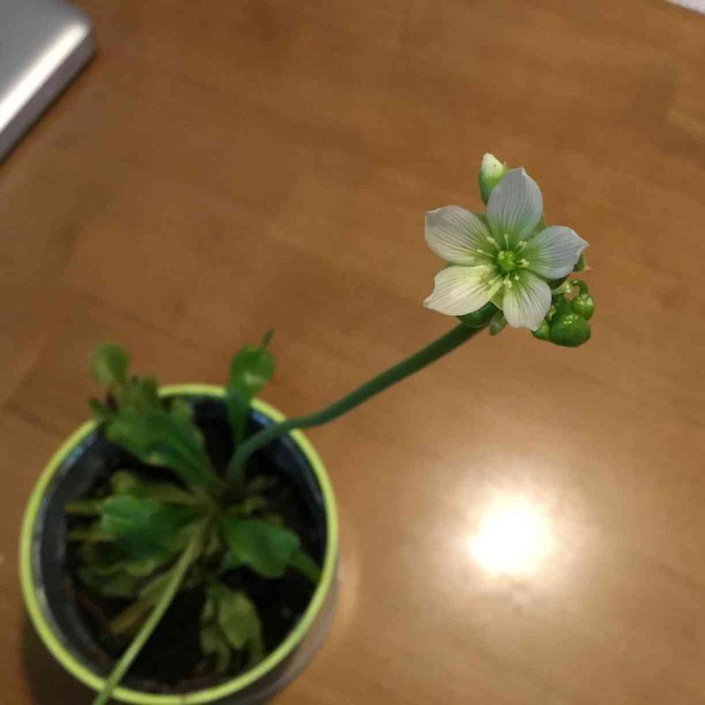去年面白半分で買ったハエトリグサに花が咲きました。