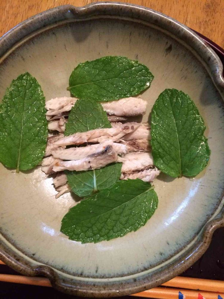 年々、よく育つようになる、我が家のミント。ごま油をたらした鰯を巻いて、美味しくいただきます。