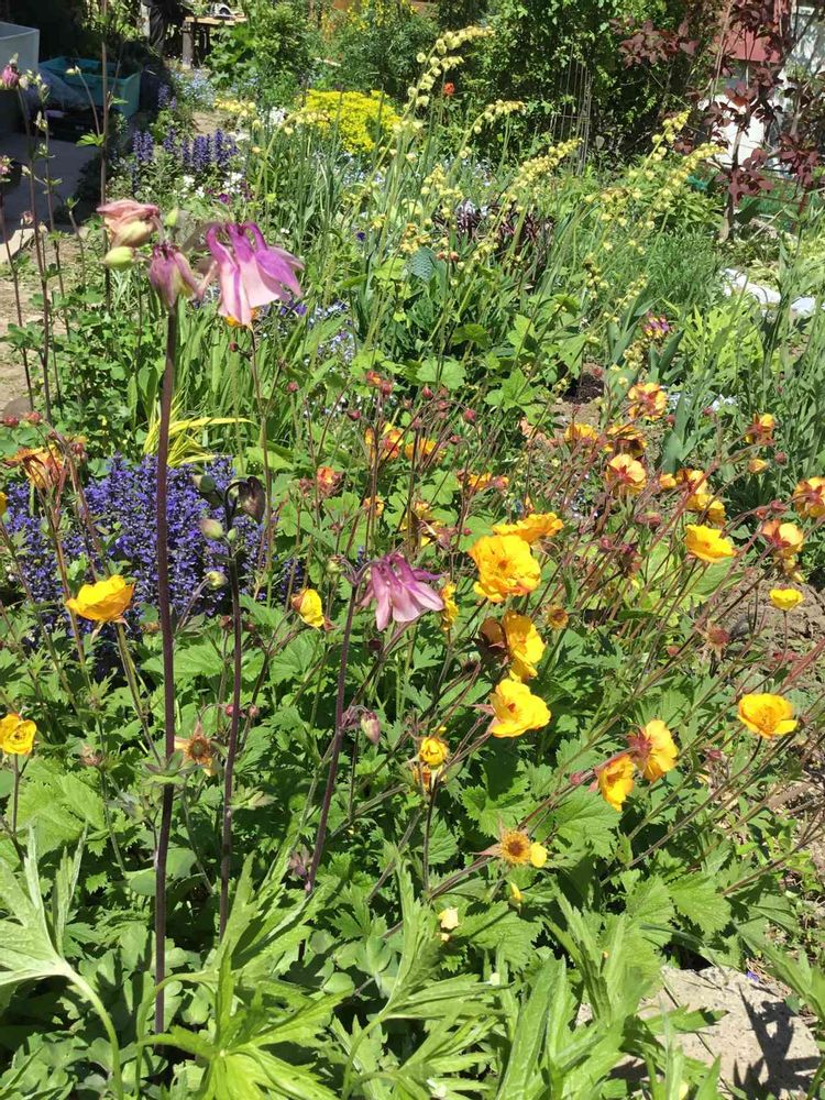 あとから植えたミヤマオダマキがもうどこにあるか分からないくらい、あちらこちらに野良の苗が生えてきます。