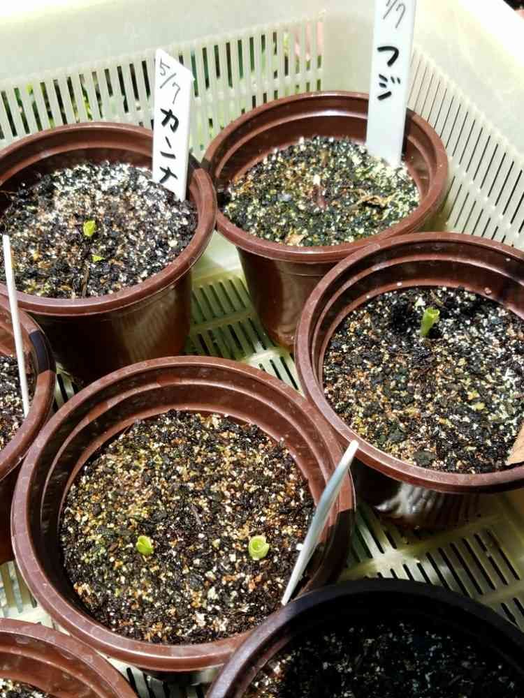 今月のゴールデンウィーク最終日にまいたカンナとフジがちょろっと芽🌱を出してきました。