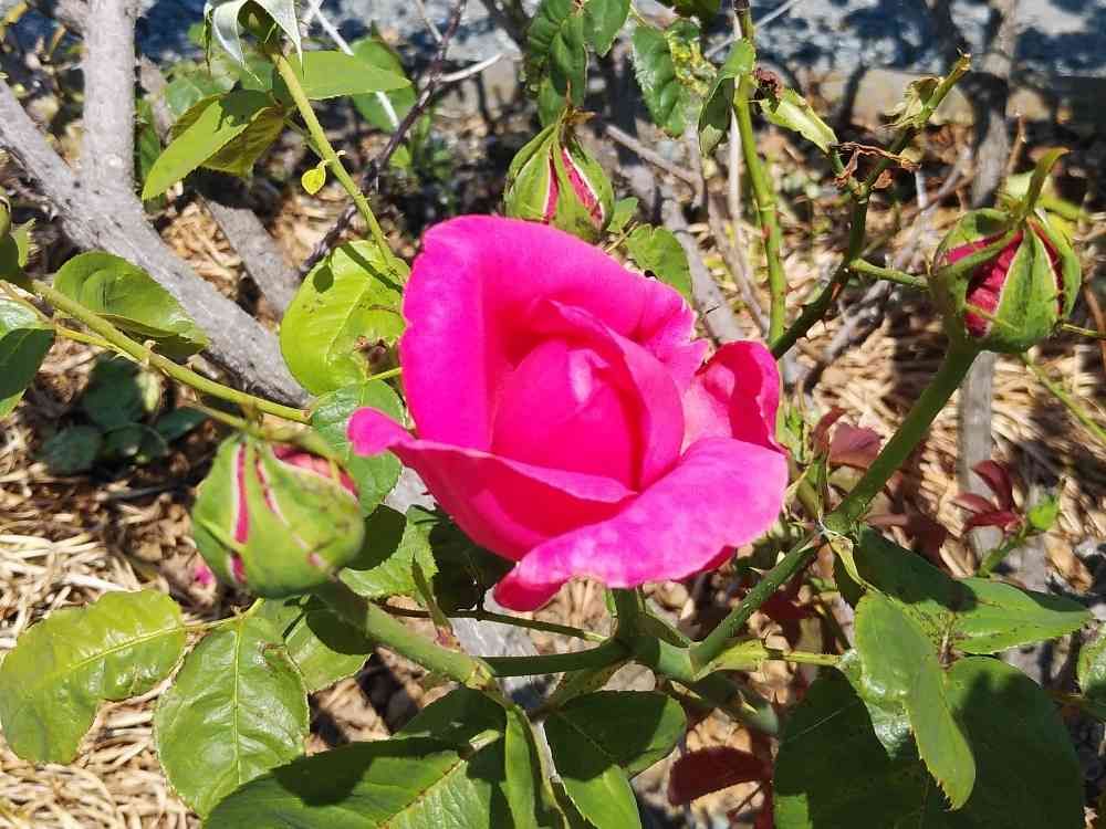 マリアカラスが蕾に囲まれて次々に咲きそう🌹🌹🌹