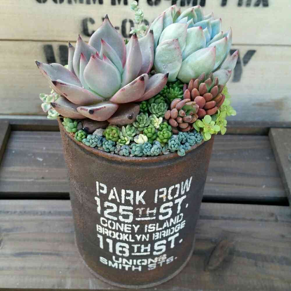 sweetbasketさんのリメ缶に寄せ植えしました(*^O^*)🎵