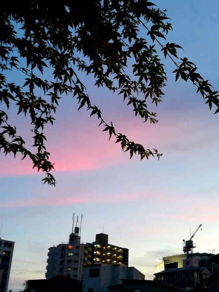 は~い💕薔薇色の雲、紅葉の葉っぱがそよそよと揺れて🎵綺麗な夕暮れでした( 〃▽〃)🎶コメントを有難うございました❣️