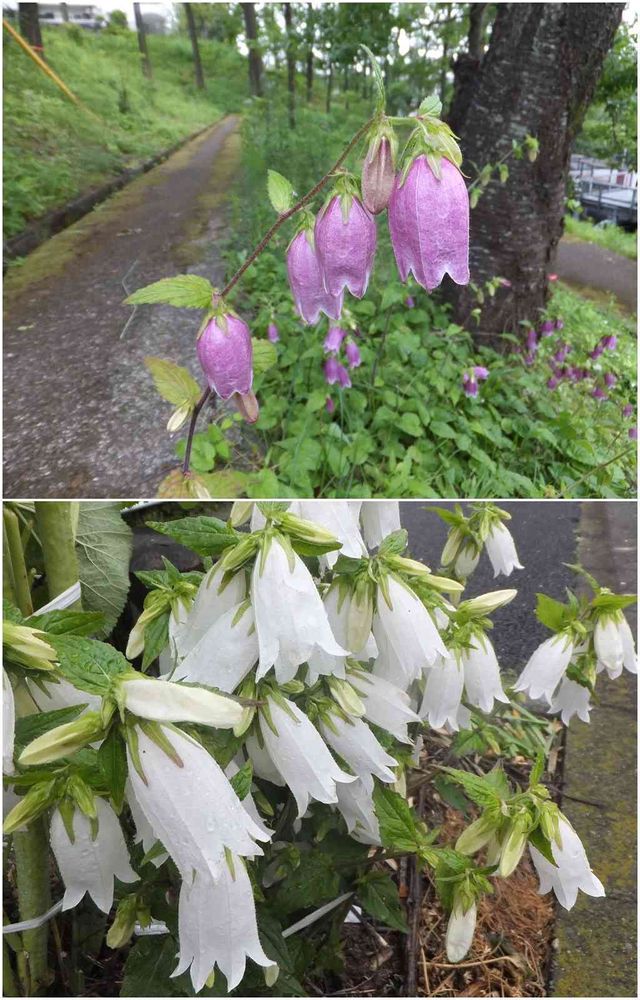 お散歩途中。 ホタルブクロ(蛍袋)が綺麗に咲いていました。 パチリ、パチリ