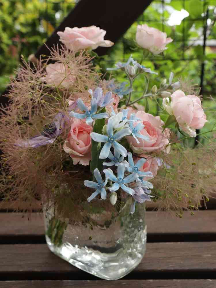庭のスモークツリーとオキシペタラム(ブルースター)を足して