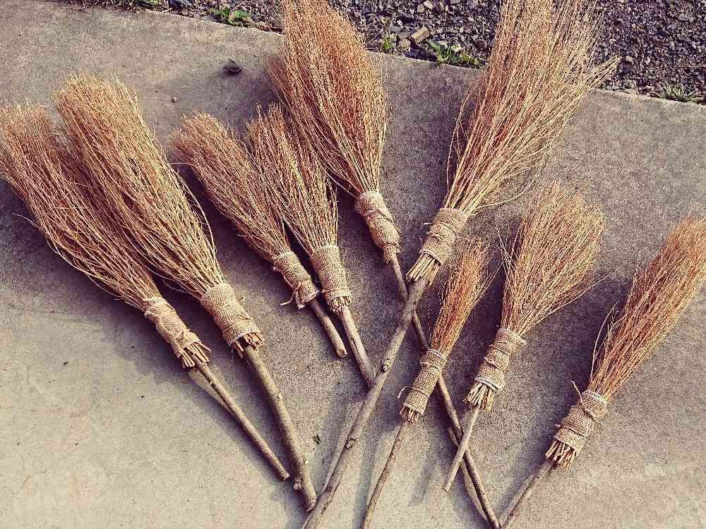 新しくコキアの苗を植えたついでに、車庫の中で眠っていたコキアたちをホウキにしました😊