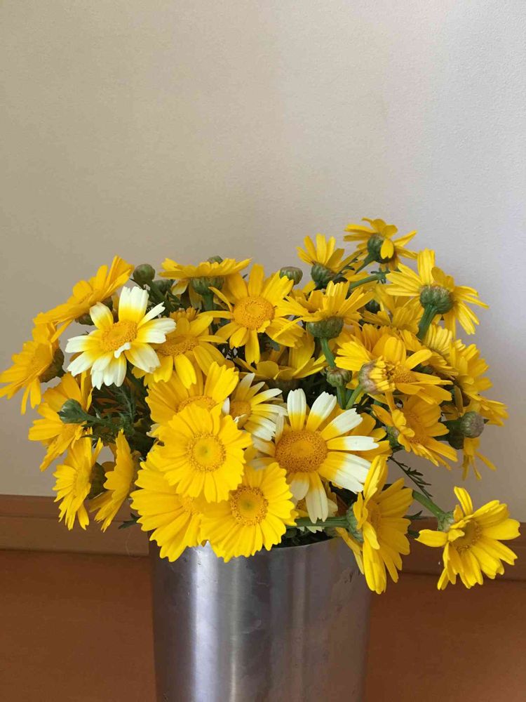 畑に残された春菊が思いの外綺麗な花を咲かせてくれたので摘んでから耕しました❣️