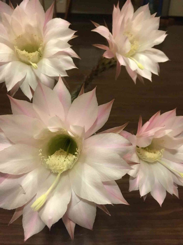 今夜、サボちゃんのお花が4つ一度に咲きました✨🌸🌵✨